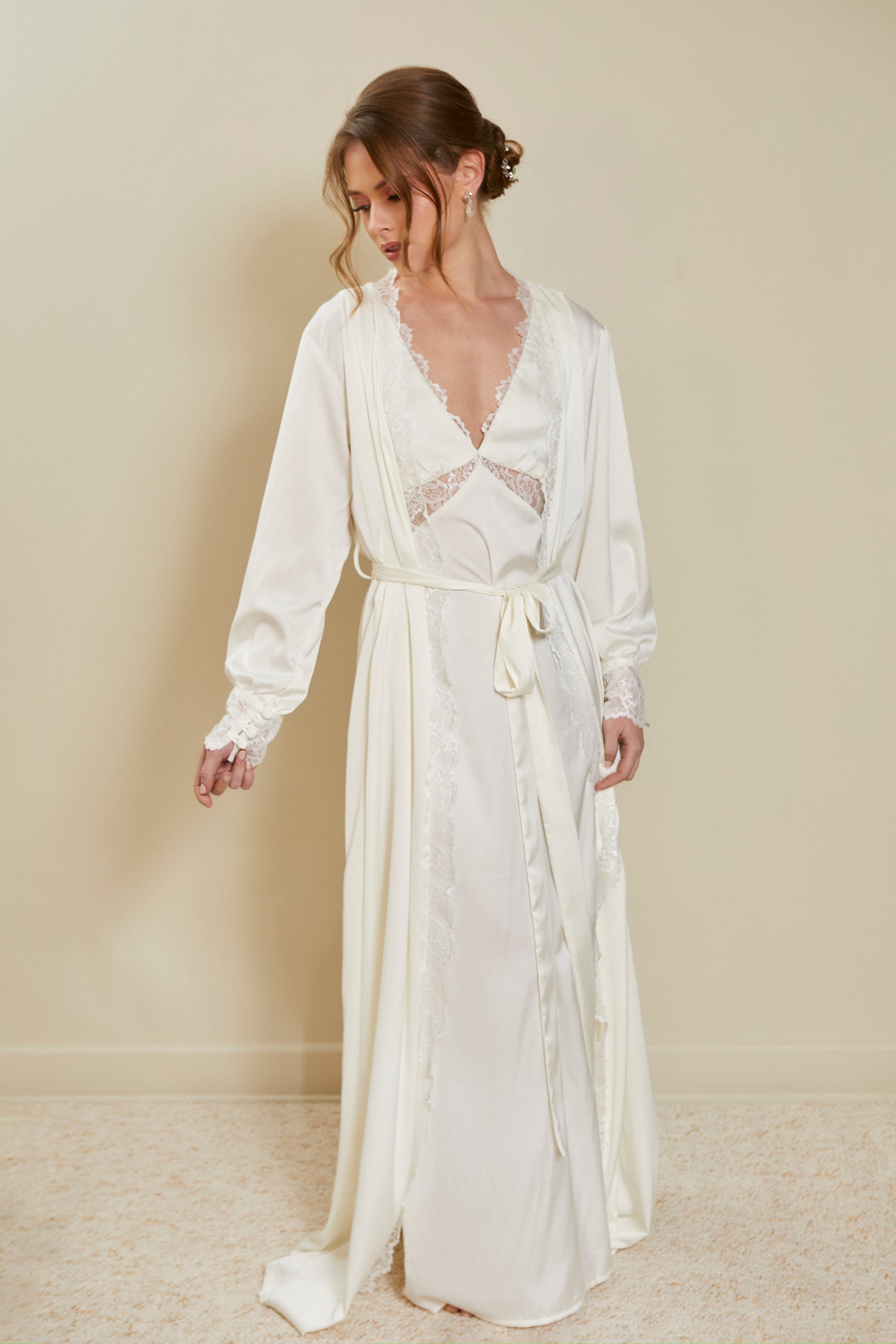 Bata sofisticada y elegante, para que tus fotos getting ready de novia sean soñadas ✨